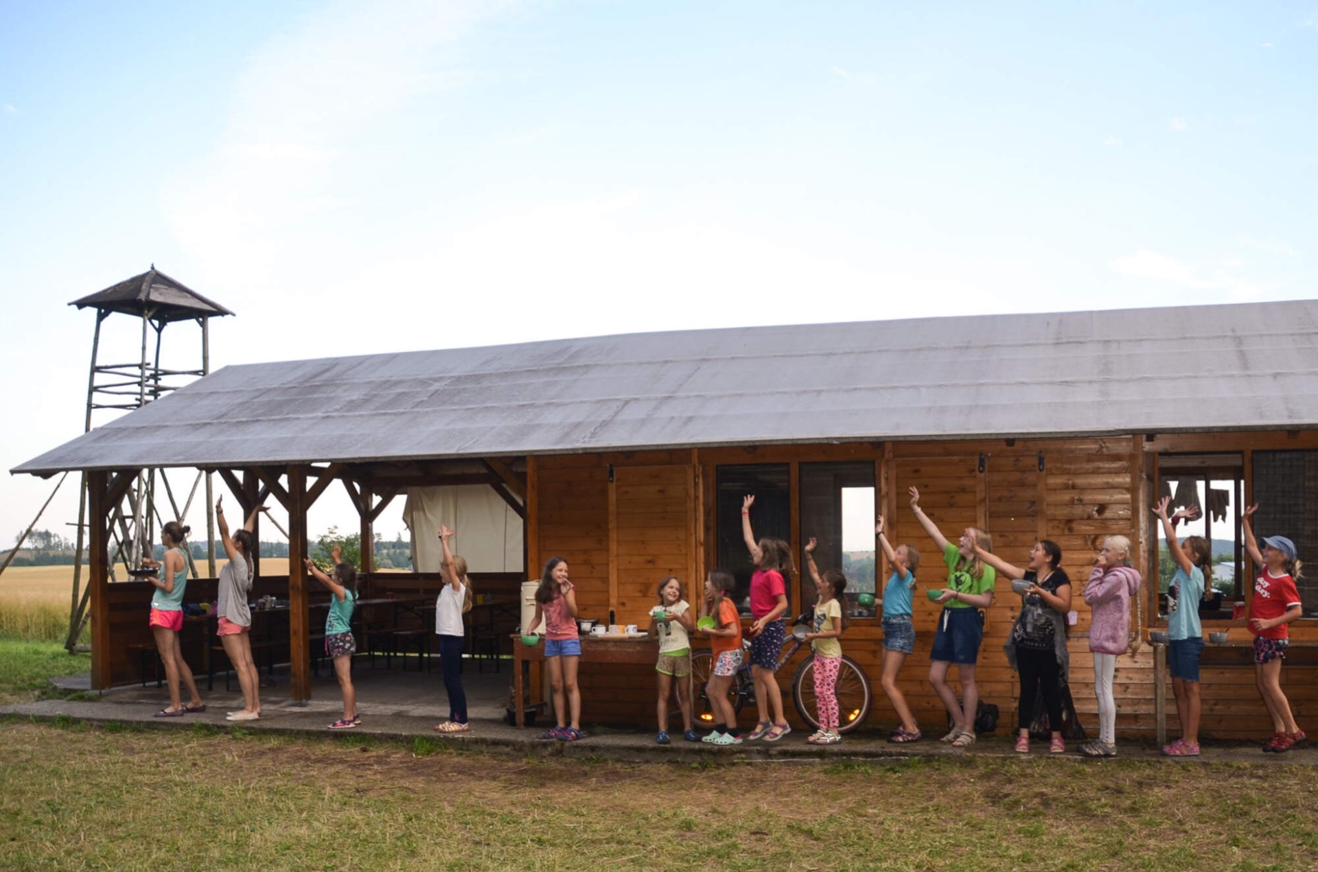 jídelně, která byla po celou dobu tábora k dispozici. Často jim pršelo,